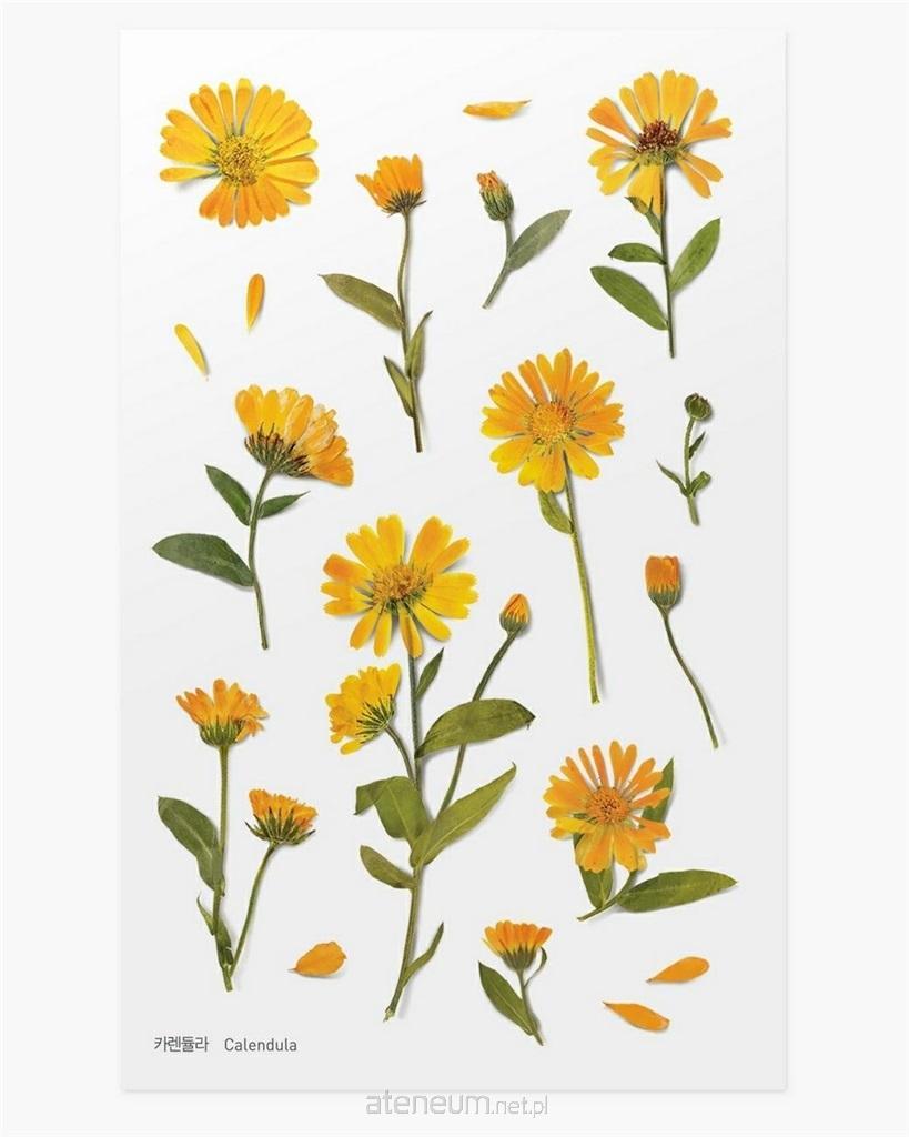 Naklejki ozdobne kwiaty Nagietek. Niezwykle realistyczne naklejki, które doskonale odwzorowują zasuszone rośliny. Zostały wykonane z tworzywa PET zapewniającego wysoką trwałość i precyzyjne kształty. Perfekcyjne cieniowanie i matowe wykończenie dają naturalny efekt po naklejeniu. Wykorzystasz je w domu, biurze, w planerach, książkach. W fantastyczny i kreatywny sposób można je również wykorzystać do scrapbookingu oraz bullet journalingu.