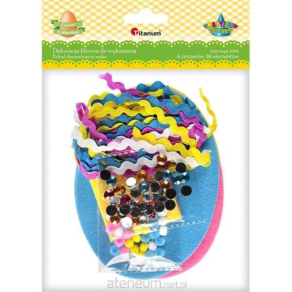 Zestaw do złożenia: pisanka filcowa 103 x 140 mm niebieska, żółta, różowa, 6 sztuk.