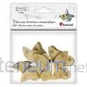 Drewniane dekoracje samoprzylepne: motyle 56 x 43 mm, naturalne z białym tułowiem, 6 sztuk.