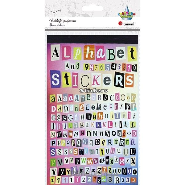 Naklejki papierowe 6 plansz litery i cyfry mix kolorów 1362szt.