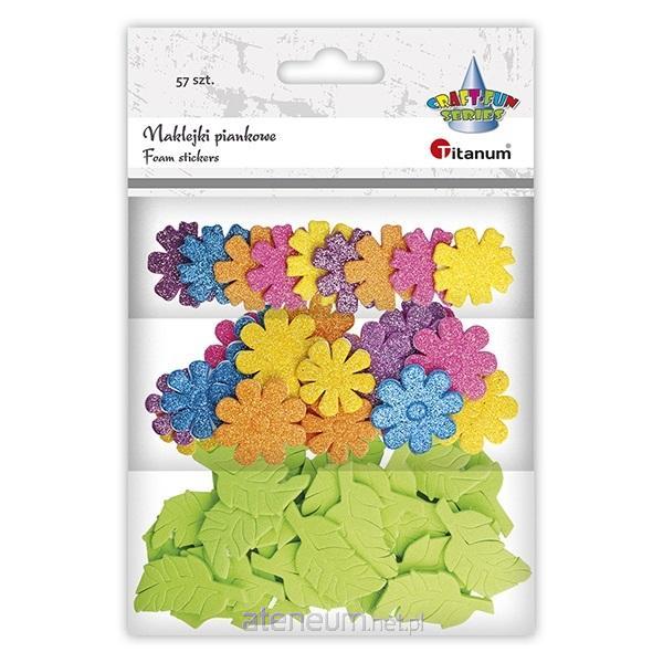 Naklejki piankowe kwiaty brokatowe 2 wzory i listki jasnozielone