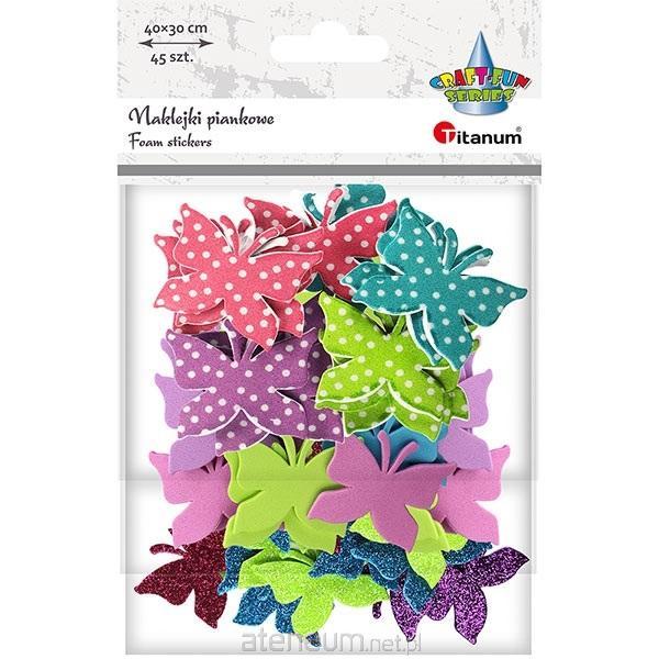 Naklejki piankowe motyle 40x30mm różowe, niebieskie, fioletowe, zielone 3 rodzaje: w kropki, gładkie, brokatowe 45szt.