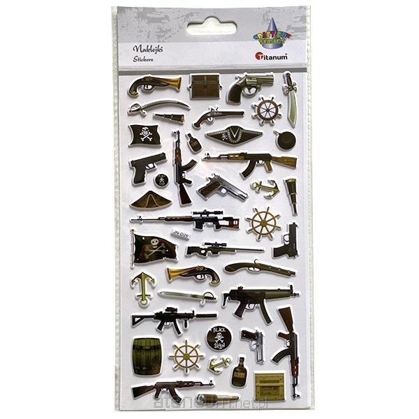 Naklejki wypukłe: pistolety, karabiny, strzelby, akcesoria pirackie - 41 sztuk.