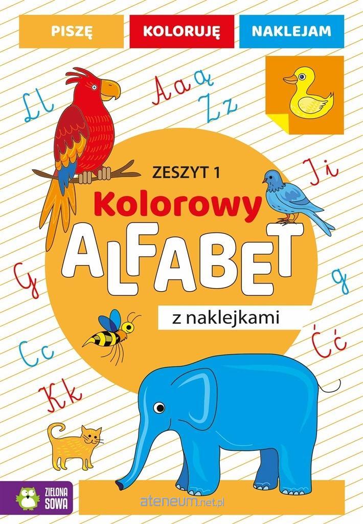 Poznaj alfabet z kolorowymi zwierzakami i mnóstwem naklejek! Pisz, koloruj i baw się! Kolorowy alfabet pozwala dziecku zapoznać się z literami pisanymi w liniaturze. Strzałki w literze wzorcowej wskazują na kolejność łączenia jej poszczególnych elementów. Pisanie po śladzie pomaga utrwalić prawidłowy zapis litery. Książka jest ciekawą propozycją edukacyjną zwłaszcza dla dzieci w wieku 45 lat, poznających alfabet i przygotowujących się do samodzielnego czytania i pisania. Proste polecenia pomagają rozwijać koncentrację i spostrzegawczość dziecka. Zamieszczone w książce duże rysunki do kolorowania stwarzają możliwość ćwiczenia sprawności manualnej ręki. Dodatkową atrakcją są kolorowe naklejki zachęcającedo zabawy podczas poznawania liter.