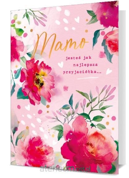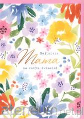 Kolorowy kwiatowy karnet z okazji Dnia Matki. Wewnątrz karnetów życzenia oraz kolorowa koperta.