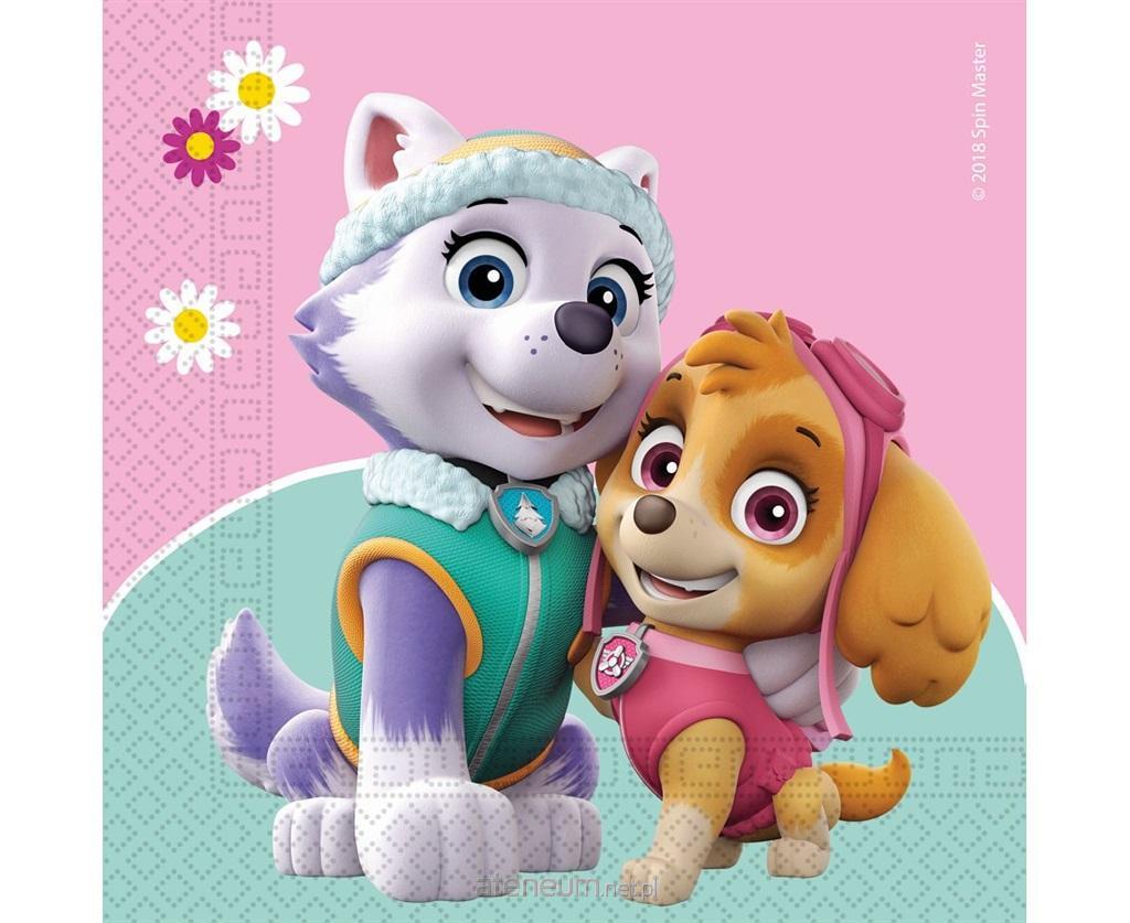 Pastelowe serwetki Psi Patrol Skye and Everest będą idealnym rozwiązaniem na imprezy okolicznościowe, urodziny czy tematyczne! Ilość: 20szt. Rozmiar: 33x33cm 2 warstwowe serwetki.