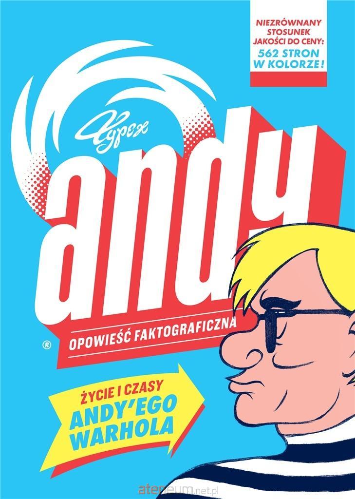 Ten wizualny majstersztyk opowiada o tym, jak mały Andrew Warhola przeszedł drogę od chorowitego dziecka w przemysłowym Pittsburghu do Andy'ego Warhola, enfant terrible nowojorskiego świata sztuki i supergwiazdy światowej popkultury. Nie poprzestając na stworzeniu spektakularnego ilustrowanego portretu Warhola-artysty i Warhola-człowieka, Typex przedstawia również oszałamiający przegląd popkultury XX wieku. Andy Warhol został okrzyknięty mistrzem sztuki, jako produkcji masowej; człowiekiem, który doskonale zdawał sobie sprawę z siły konsumpcjonizmu i przewidział współczesną obsesję na punkcie przepychu i sensacji. Chwalony i pogardzany za swoją fiksację na punkcie wizerunku, powierzchowności i sławy, Warhol - twórca wyrażenia piętnaście minut sławy - jawi się w tej biografii, jako prorok naszej skupionej na celebrytach kultury selfie. Andy składa się z dziesięciu rozdziałów poświęconych różnym okresom w życiu Warhola, z których każdy zilustrowany jest w radykalnie odmiennym stylu, co odzwierciedla nieustanne dążenie Warhola do odnowy. W swojej pracy i w życiu osobistym Warhol wielokrotnie uwalniał się od stylów, miejsc i ludzi: na przestrzeni ponad 500 stron widzimy, jak kolejno wciela się w pop-art, flower power, punk i hip-hop, by następnie ruszyć dalej zostawiając je za sobą. Andy: Opowieść faktograficzna to powieść graficzna o monumentalnej skali: wielowarstwowa, zabawna i poruszająca. To także wizualne widowisko, pełne ukłonów w stronę sztuki i muzyki z czasów życia i twórczości Warhola.