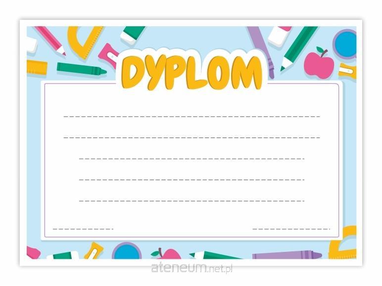 Kolorowe obrazki oraz szkolny motyw na dyplomie dodają mu uroku, a także urozmaicą każdemu dziecku szkolne uroczystości.