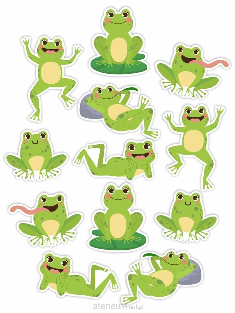 Zestaw składa się z 12 żabek, w 6 w różnych pozycjach - idealne do wiosennej dekoracji szkoły i przedszkola.