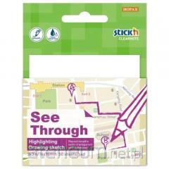 Plastikowe, przezroczyste karteczki samoprzylepne w kolorze żółtym do wielokrotnego przyklejania i odklejania.Widząc pod spodem tekst można zaznaczyć najważniejsze fragmenty na karteczce a nie np. w książce. Służą także do zapisywania najważniejszych notatek. Rozmiar: 76 x 76 mm, 50 szt.