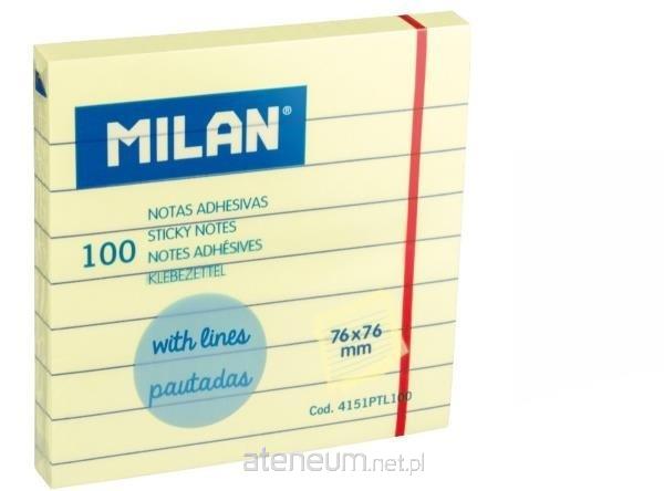 Karteczki samoprzylepne linia 76x76mm 100k 4151PTL100 MILAN Karteczki samoprzylepne w linię, jasno żółte. Rozmiar: 76 x 76 mm, 100 kartek.