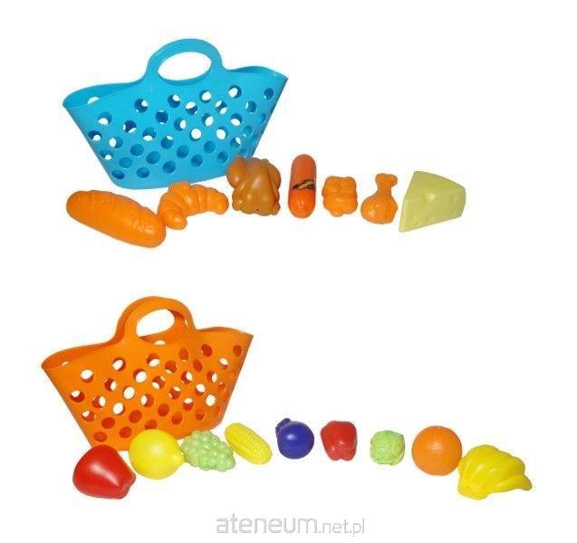 Kolorowe koszyczki z jedzeniem. W zestawie pieczywo, mięso oraz ser lub owoce i warzywa. Zabawka urozmaici dzieciom zabawę w dom, gotowanie lub sklep. Produkt dla dzieci od 3 lat. Podane wymiary są wymiarami koszyczka.