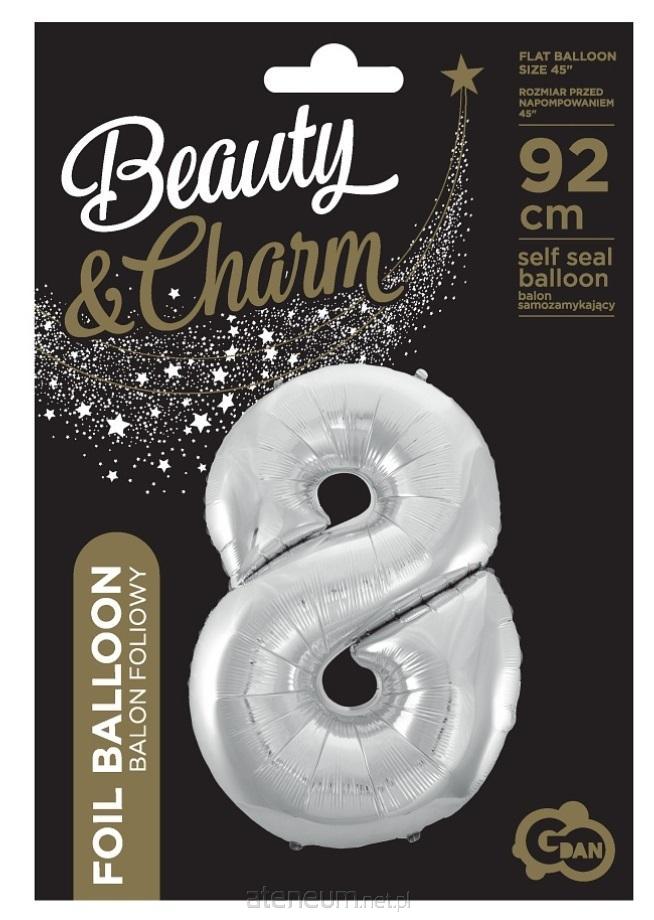 Balon foliowy Cyfra 8, srebrna, Beauty&Charm, 92 cm Wymiar balonów po napompowaniu: ok. 92 cm. Kolor: srebrny. Balony są przeznaczone do napełnienia helem. Napełnienie ich powietrzem spowoduje, że balony nie będą się unosić. Opakowanie zawiera 1 szt. Producent: GoDan S.A. Balony nie są napełnione helem.