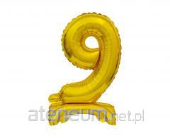 Balon foliowy B&C cyfra 9 stojący złoty 38cm