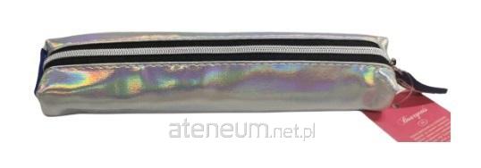 Błyszczący mały piórnik z jedną komorą, zamykany na zamek.