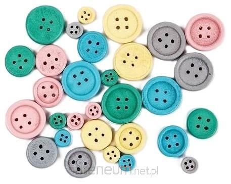 Drewniane guziki ozdobne, mix kolorów pastelowych, mix rozmiarów - 10 x 1 cm, 10 x 1,5 cm, 10 x 2 cm, w opakowaniu 30 szt.