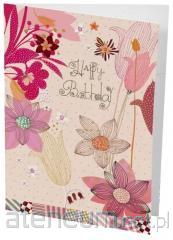 Karnet B6 + koperta Urodziny Kwiaty różowe