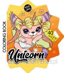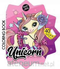 Kolorowanka dla dzieci w kształcie serca, z magicznymi zwierzątkami. W zestawie 40 naklejek. Wyprodukowano na Ukrainie.
