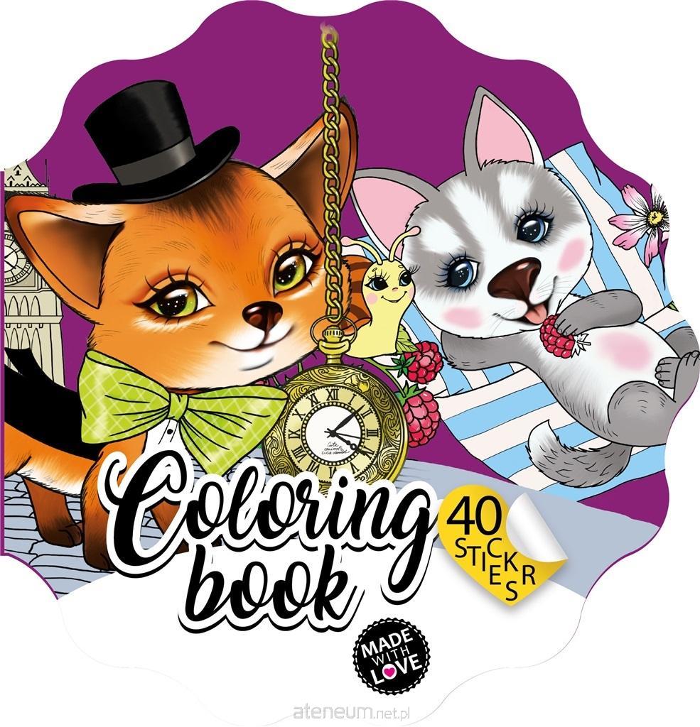 Kolorowanka dla dzieci w kształcie kwiatka, z magicznymi zwierzątkami. W zestawie 40 naklejek. Wyprodukowano na Ukrainie.