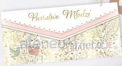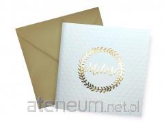 Karnet okolicznościowy z kopertą i życzeniami w środku.