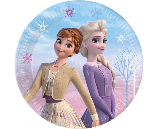 Średnica: 23 cm Materiał: 100% papier Kształt: okrągły Kolor: wielokolorowy Nadruk: Anna i Elza W opakowaniu: 8 szt.