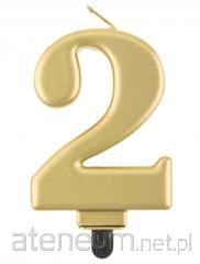 Świeczka cyferka 2 Beauty&Charm metalik złota 8cm