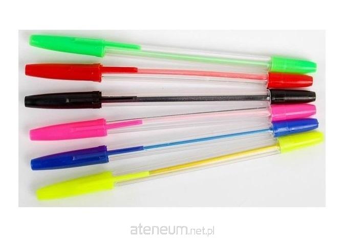 Zestaw 6 jednorazowych długopisów, przezroczysty korpus, kolor tuszu odpowiada kolorowi wieczka, grubość linii 1,0 mm.