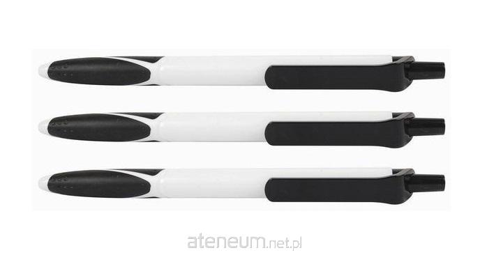Plastikowy długopis, automatyczny, ergonomiczna obudowa z uchwytem antypoślizgowym, technologia double injection guma+plastik, wymienny wkład F-411, niebieski kolor tuszu, grubość linii 0,7 mm, 50 sztuk w paczce.