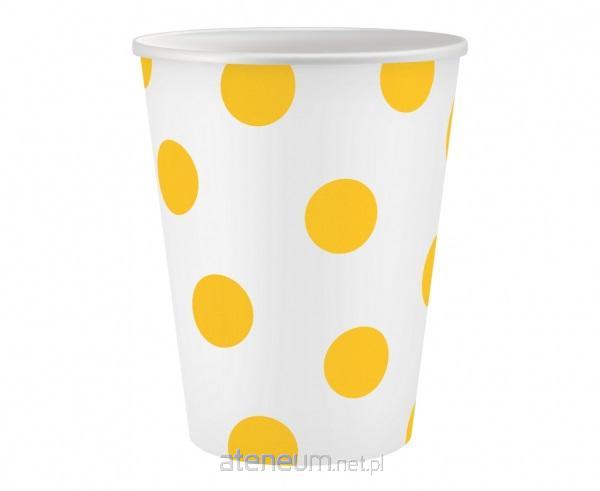 "KUBECZKI PAPIEROWE W GROSZKI Pojemność: 250 ml Materiał: Papier Kolor: Biały Nadruk: Żółte groszki Ilość sztuk w opakowaniu: 6 Producent: GoDan S.A. "