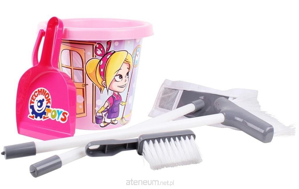 Zabawka "Zestaw do sprzątania Technok" jest dla małego pomocnika mamy. W zestawie duże jasne wiadro, mop, miotła, szczotka i szufelka. Malowanie na wiadrze wykonane jest w technologii IML, co gwarantuje wysoką jakość. Różowo-fioletowa kolorystyka pozwala na zakup zabawki zarówno dziewczynkom, jak i chłopcom.