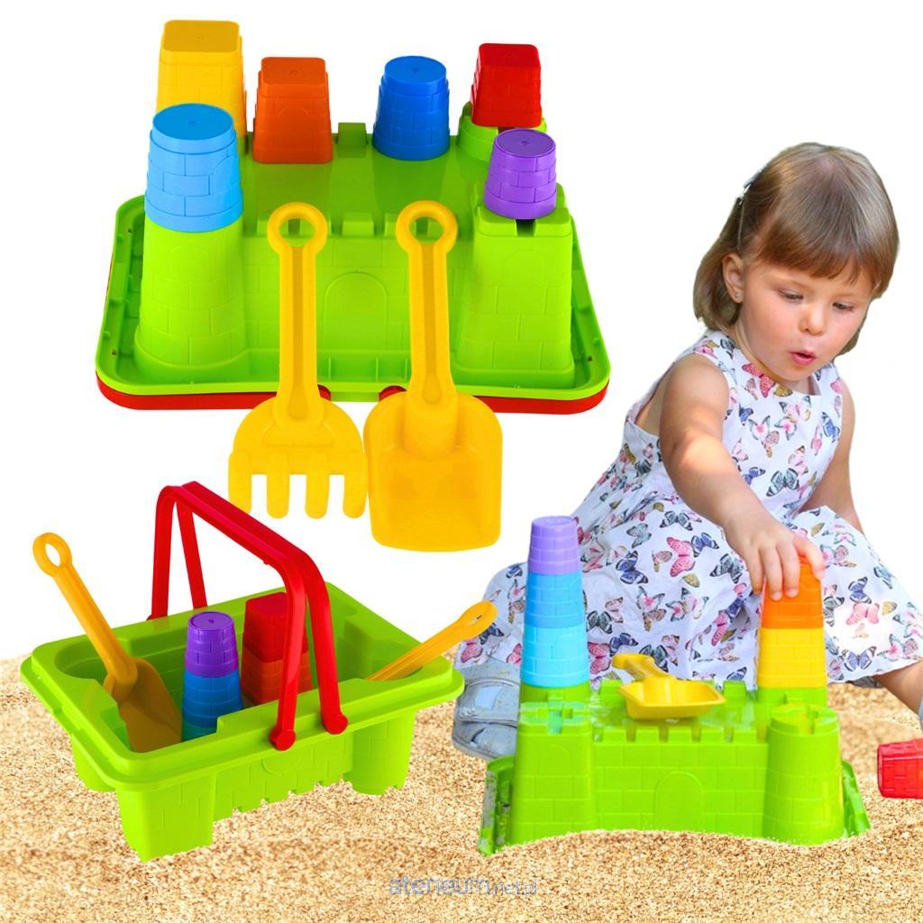 Zestaw do piasku: wiaderko, foremki, łopatka, grabie. Wszystkie elementy zestawu wykonane są z mocnego, wysokiej jakości, bezwonnego tworzywa sztucznego.