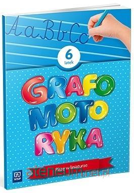 Grafomotoryka. Sześciolatek - rysowanie po śladzie złożonych ilustracji, nauka kreślenia wielkich i małych liter pisanych w powiększonej i standardowej liniaturze.