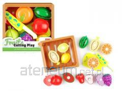 Kompletny zestaw : blat ze zlewem i kranem, garnek z pokrywką, patelnia, łyżka - 4 szt., widelec - 4 szt., nóż - 1 szt., talerz - 4 szt., filiżanka - 4 szt., spodek - 4 szt. ., foremki różnej wielkości - 16 szt., ogórek, marchew, bakłażan, pomidor, ziemniak, cebula, kukurydza, papryka, pudełko - 2 szt., stojak, chochla, duży widelec, łopatka, trzepaczka, tłuczek, deska, wałek do ciasta, gąbka, cukiernica z pokrywką, czajniczek z pokrywką.
