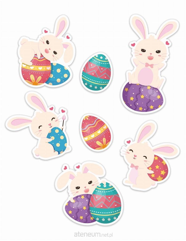 Zestaw składa się z ozdobnych 5 kolorowych zajączków oraz 2 pisanek.
