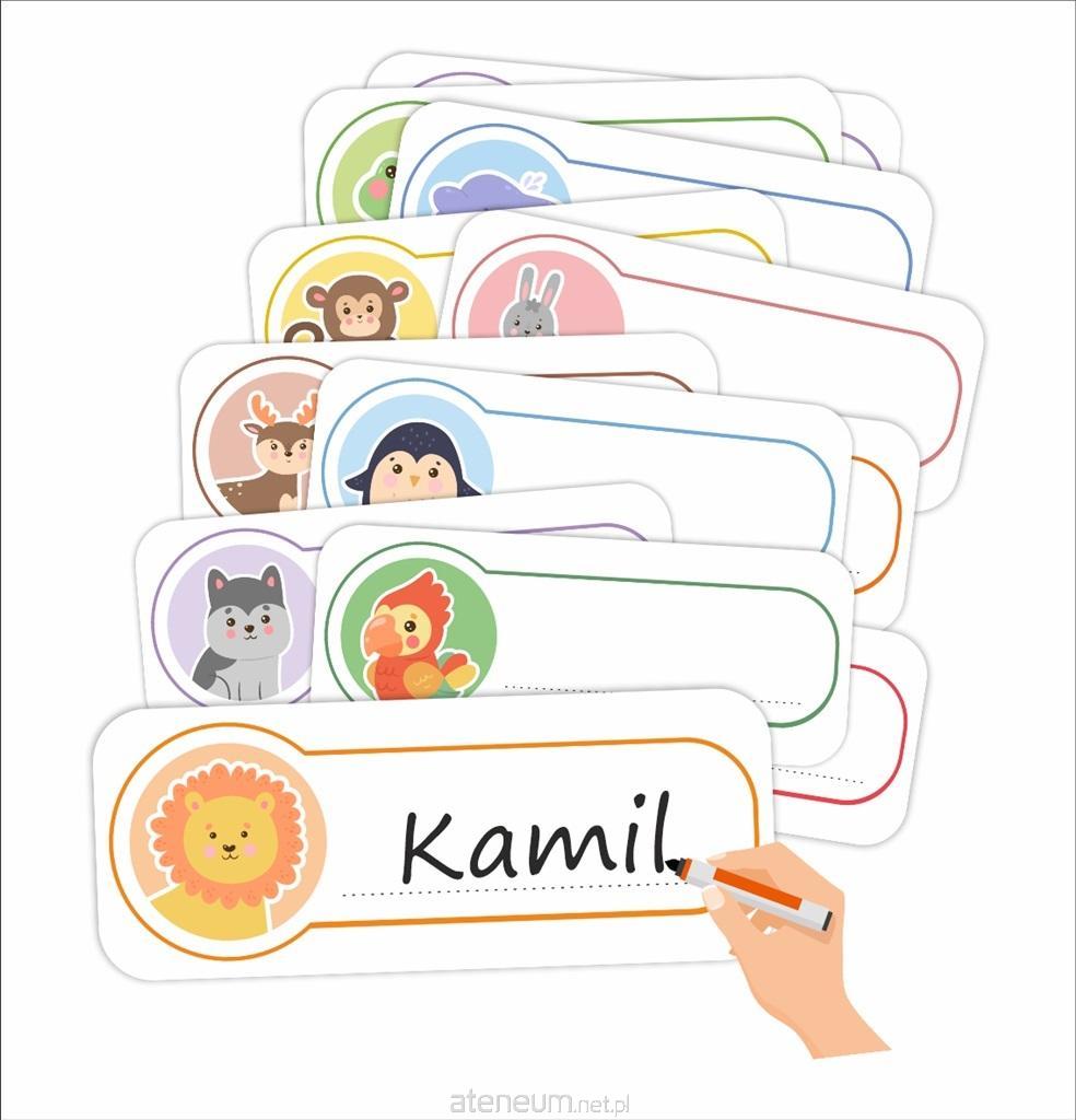 Na każdej karcie znajduje się inne zwierzątko oraz miejsce na wpisanie imienia dziecka.