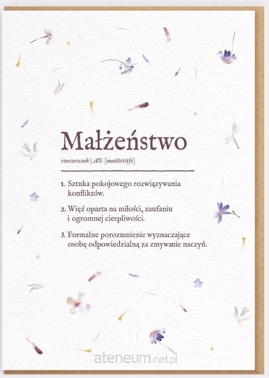 Niezależnie od tego, która definicja małżeństwa najbardziej pasuje do bliskiej Ci pary młodej, warto aby jak najszybciej zapoznali się z każdą z nich! Kartka ślubna DEFINICJA MAŁŻEŃSTWA spełni to zadanie. Podaruj ją nowożeńcom!