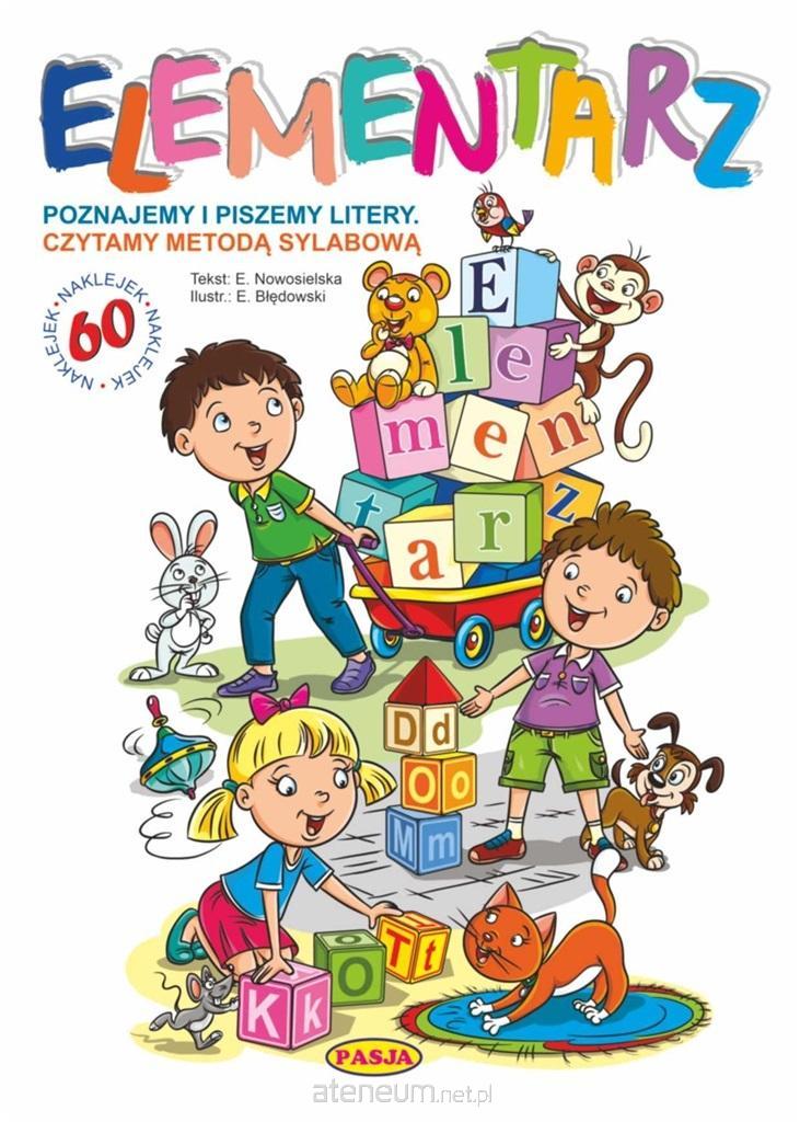Książka edukacyjna do nauki czytania metodą sylabową oraz pisania, malowanie i naklejanie, polecenia i zadania logiczne.