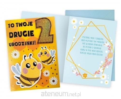 Karnet Dream Cards Plus "Urodziny 2" w powiększonym tzw. Angielskim formacie 140x190 mm. Kartka z ozdobnej serii Dream Cards Plus na drugie urodziny robi wrażenie dzięki atrakcyjnej kolorystyce i ciekawym zdobieniom. To idealny wybór łączący przyjazną cenę z jakością. Cechy szczególne: wielkość: 145 x 195 cm po złożeniu kopertą, wnętrze: kolorowe, wyjątkowe życzenia w środku, w komplecie: dopasowana kolorystycznie koperta. zdobienia: różnorodne, bogate (w zależności od wzoru: przyklejane dekoracje, elementy biżuteryjne, odstawniki, brokat, metaliczne folie, tłoczenia itp.), okazja: urodziny, 2 urodziny