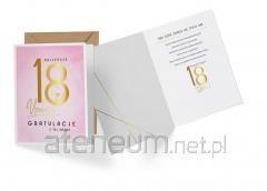Karnet Dream Cards Plus "Urodziny 18" w powiększonym tzw. Angielskim formacie 140x190 mm. Kartka z ozdobnej serii Dream Cards Plus robi wrażenie dzięki atrakcyjnej kolorystyce i ciekawym zdobieniom. To idealny wybór łączący przyjazną cenę z jakością. Cechy szczególne: wielkość: 145 x 195 cm po złożeniu kopertą, wnętrze: kolorowe, wyjątkowe życzenia w środku, w komplecie: dopasowana kolorystycznie koperta. zdobienia: różnorodne, bogate (w zależności od wzoru: przyklejane dekoracje, elementy biżuteryjne, odstawniki, brokat, metaliczne folie, tłoczenia itp.), okazja: Osiemnastka