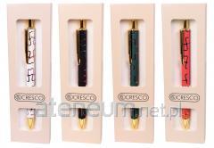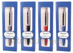 Charakterystyczny i klasyczny model długopisu, który wyposażony został w tzw. cichy mechanizm wysuwania wkładu podczas przyciskania nie słychać charakterystycznego odgłosu klik klik, jaki występuje przy standardowych długopisach. Długopis zasilany jest wielopojemnym wkładem z wysokiej jakości tuszem w kolorze niebieskim.