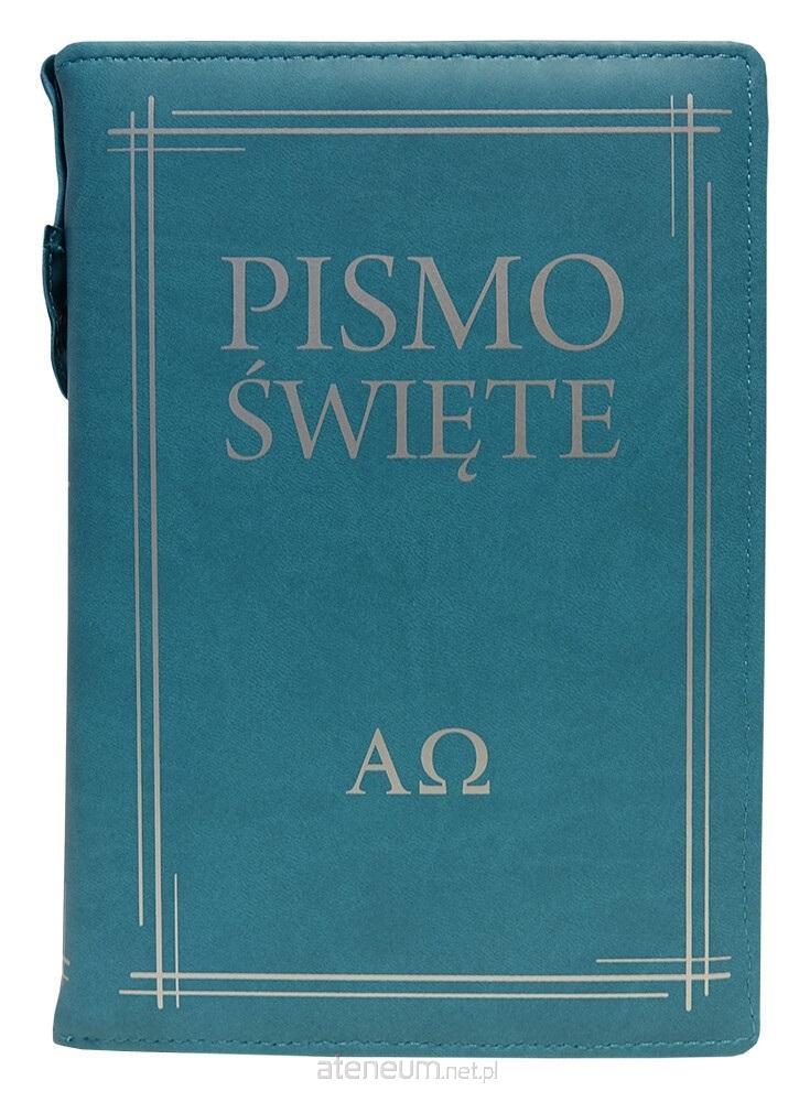 Pismo Święte Starego i Nowego Testamentu w etui w kolorze turkusowym. Tłumaczenie Pisma na współczesny język polski dokonane przez ks. bp. Kazimierza Romaniuka.