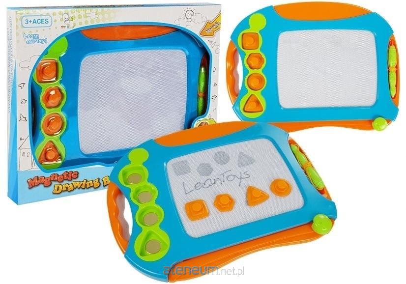 Prezentowany zestaw składa się z tablicy o imponującym wymiarze, rysika i czterech stempelków w kształcie figur geometrycznych. Duża tablica magnetyczna składa się z neutralnej, przyjemnej kolorystyki klasyczne barwy spodobają się zarówno dziewczynkom, jak i chłopcom. Po bokach znajdują się uchwyty ułatwiające przenoszenie zabawki.