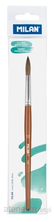 Szkolny okrągły pędzel serii 101 nr 12 z krótkim drewnianym trzonkiem. Skład: 70% naturalnego włosia koziego + 30% syntetyczne. Brązowe lakierowane wykończenie i aluminiowa skuwka bez spawania, odporna na rdzewienie. Bardzo miękkie włosie idealne do akwareli, technik wodnych i farb plakatowych. Lepsze zatrzymanie wody i farby. Gładsza linia. Lepsza odporność i elastyczność, co ułatwia odzyskanie kształtu po jego użyciu. Średnica włosia: 6 mm. Długość włosia: 26,2 mm. Długość pędzla: 200 mm.