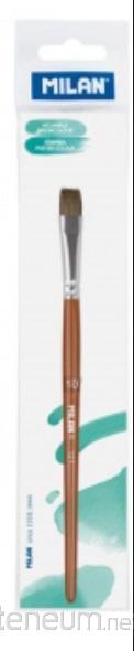 Szkolny płaski pędzel serii 121 nr 10 z krótkim drewnianym trzonkiem. Skład: 70% naturalnego włosia koziego + 30% syntetyczne. Brązowe lakierowane wykończenie i aluminiowa skuwka bez spawania, odporna na rdzewienie. Bardzo miękkie włosie idealne do technik akwarelowych, wodnych i plakatowych. Lepsze zatrzymanie wody i farby. Gładsza linia. Lepsza odporność i elastyczność, co ułatwia odzyskanie kształtu po jego użyciu. Szerokość włosia: 9,2 mm. Grubość włosia: 3,9 mm. Długość włosia: 12,4 mm. Długość pędzla: 189 mm.