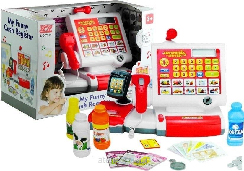 Zestaw ten będzie idealnym prezentem dla wszystkich dzieci, które spędzają dużo czasu na zabawie w sklep, supermarket lub kiosk. Z pewnością sprawi mnóstwo radości nie tylko małym kasjerom, ale i ich starszym towarzyszom zabawy. Bardzo kolorowy i efektowny komplet sprawdzi się w niejednym domowym sklepiku. Dziecięca kasa sklepowa w całości wykonana jest z plastiku, co połączono z gumowymi przyciskami.