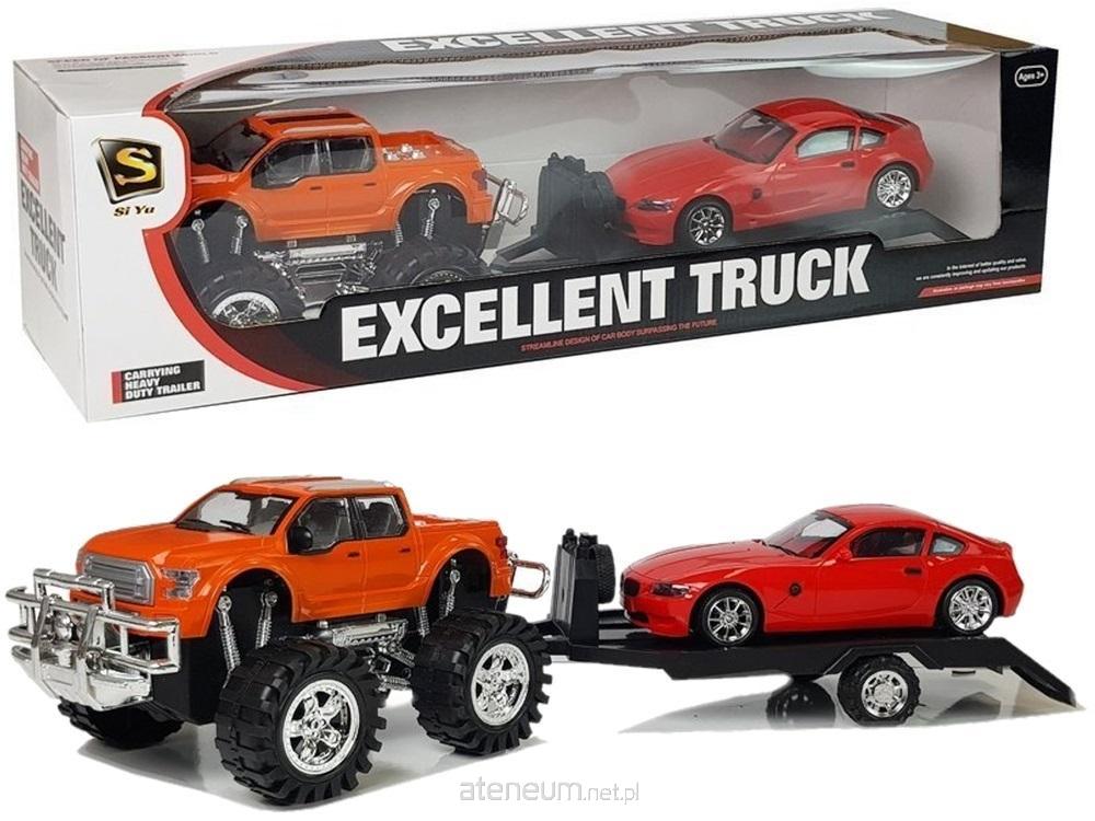 Auto terenowe, dla którego żadna przeszkoda nie jest straszna. Doskonale spisuje się zarówno na asfalcie, jak i na nierównych kamieniach. Zestaw stworzony dla miłośników samochodów, ponieważ zawiera aż dwa samochody w różnych stylach. Pierwszy z nich to pomarańczowy MONSTER TRUCK, który ma możliwość przypięcia lawety, która jest dołączona do zestawu. Drugi zaś to czerwone BMW, które można przewozić na lawecie. Modele zostały wykonane z wytrzymałego na uderzenia plastiku.