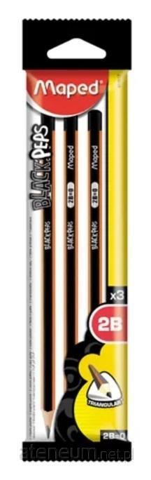 Ołówek BLACKPEPS 2B wykonany z drewna lipowego, ergonomiczny, trójkątny kształt, odporny na złamania grafit, czytelne oznaczenie twardości. Opakowanie zawiera 3 szt. JS.: 1 blister.