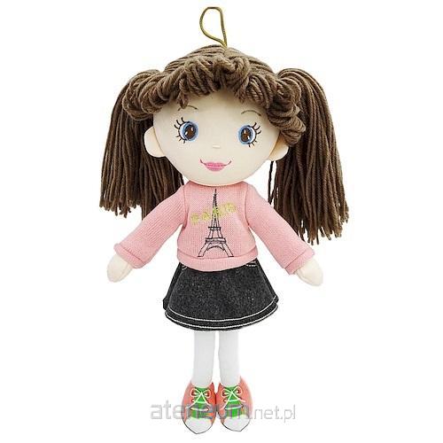 Lalka ma dwa wełniane, brązowe kucyki , niebieskie wyszywane oczka i uśmiech na szmacianej buzi. Ubrana jest w różowy sweterek z wyszytą wieżą Eiffla i złotym napisem Paryż. Do tego filcowa spódniczka w kolorze szarym. Lalka wykonana z dobrej jakości materiałów, starannie i precyzyjnie. Lalka z dźwiękiem.