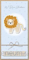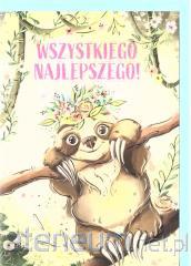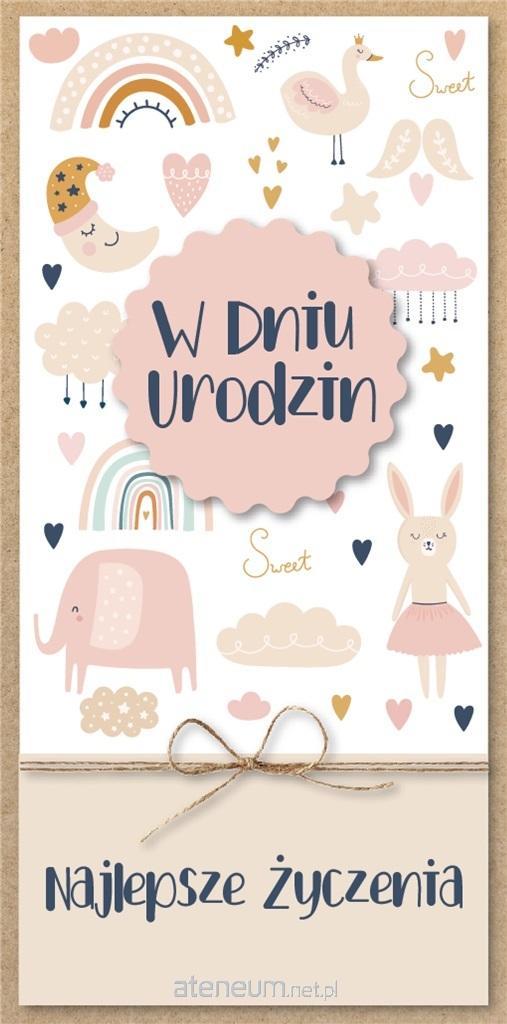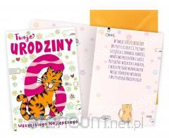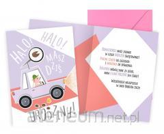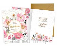 Karnet okolicznościowy z kopertą i życzeniami w środku.