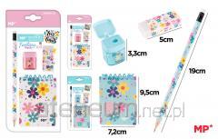 Zestaw plastikowego długopisu i ołówka automatycznego, gumowy uchwyt zapewniający wygodne trzymanie, wymienny wkład F-411 needle z igłową końcówką do bardzo cienkiego pisania, szerokość linii 0,5 mm, niebieski kolor tuszu (długopis), grafit 0,5 mm, końcówka wysuwana (ołówek automatyczny), pudełko upominkowe.